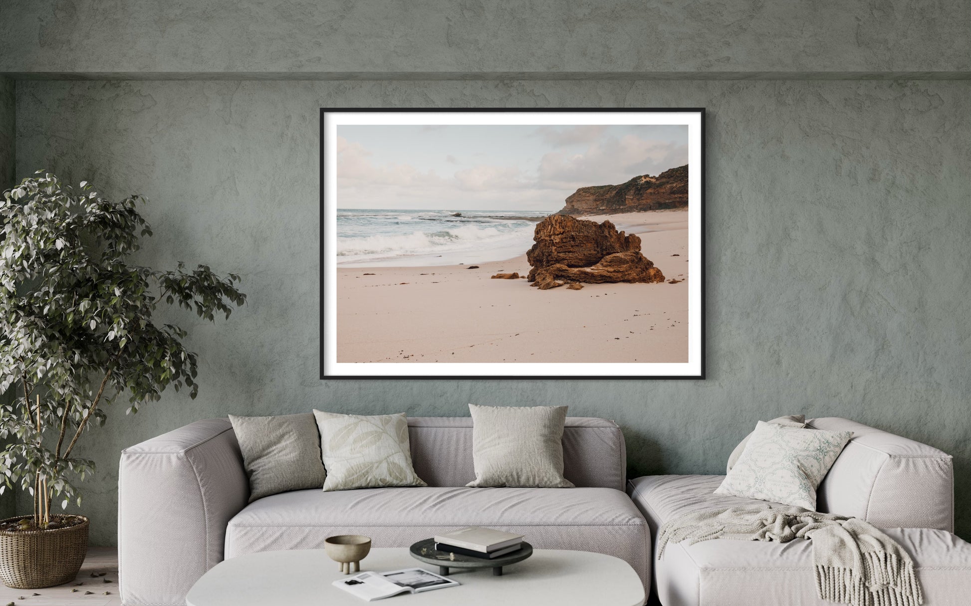 This stunning reimagining of our beloved Blairgowrie Blues captures the same dramatic Mornington Peninsula coastline, but rendered in warm, earthy tones that seamlessly complement neutral and natural interiors.
